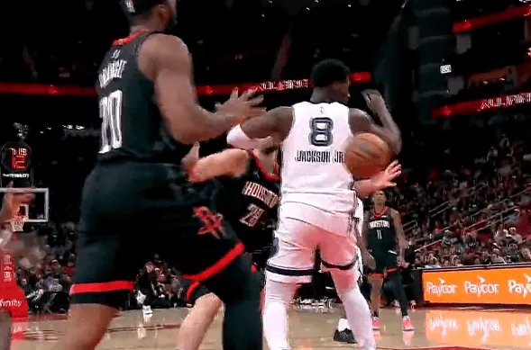 比赛的第四节,申京在小贾伦身后送出妙传,助攻奥科吉打进2+1。